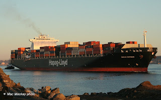 Built in 2004 by Daewoo Shipbuilding and Marine Engineering Co Ltd of Goeje, South Korea, the ship was launched as Northern Monument, but was immediately placed in long term charter to Hapag-Lloyd.The ship is precisely 300m long and has a container capacity of 6.732 TEU of which 550 may be refrigerated. At 75,990 gross tons and 85,000 deadweight it is one of the largest container ships calling on Halifax.