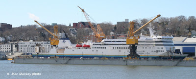 The ship spent yesterday and today afloat in the Novadock, seemingly ready to sail.